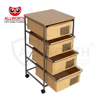 캐스터와 함께 움직일 수있는 공간 절약 가정 용품 랙 멀티 티어 캔버스 서랍 보관 카트 나무 보드