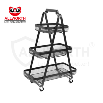 특수 디자인 타워 모양 3 단 메쉬 금속 다른 크기 바구니 선반 보관 카트 트롤리